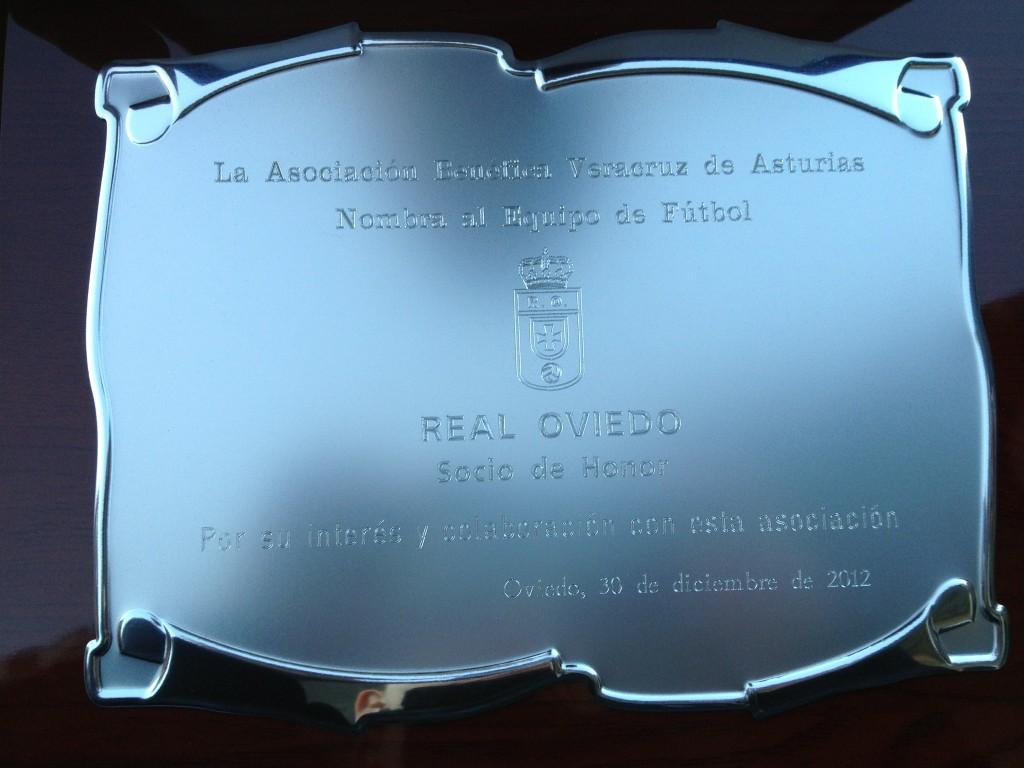 equipo, y entregaron al club una placa, nombrando al Real Oviedo como miembro